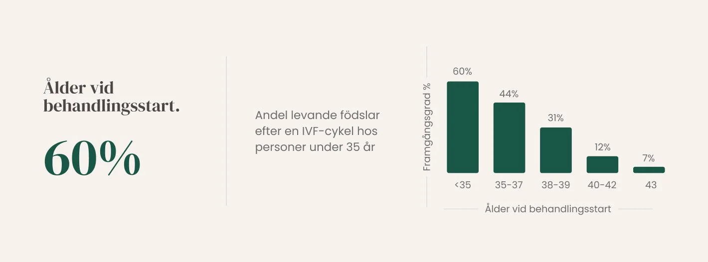 Om du är 38-39 år och fortsätter behandlingen på Eliva Clinic har du en 50% chans att bli gravid (graviditet syns på ultraljud) inom ett år.